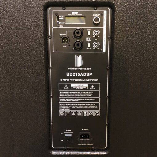 BD215ADSP DELTA 18mm birch plywood dual 15″ active 1000w Class D Digital active self powered speaker with onboard Digital Signal Processing (DSP), LCD display, and v5.0 Bluetooth.