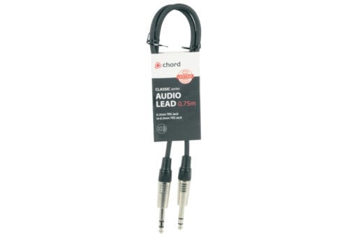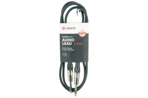 A durable, high quality, shielded audio lead with pro quality, die-cast 6.3mm stereo TRS jack plugs, offering exceptional sound and reliability. Made with high-grade cable; pure copper conductors and cotton-reinforcement; soft-grip, anti-tangle, rubberised jacket; and machine-soldered connections.