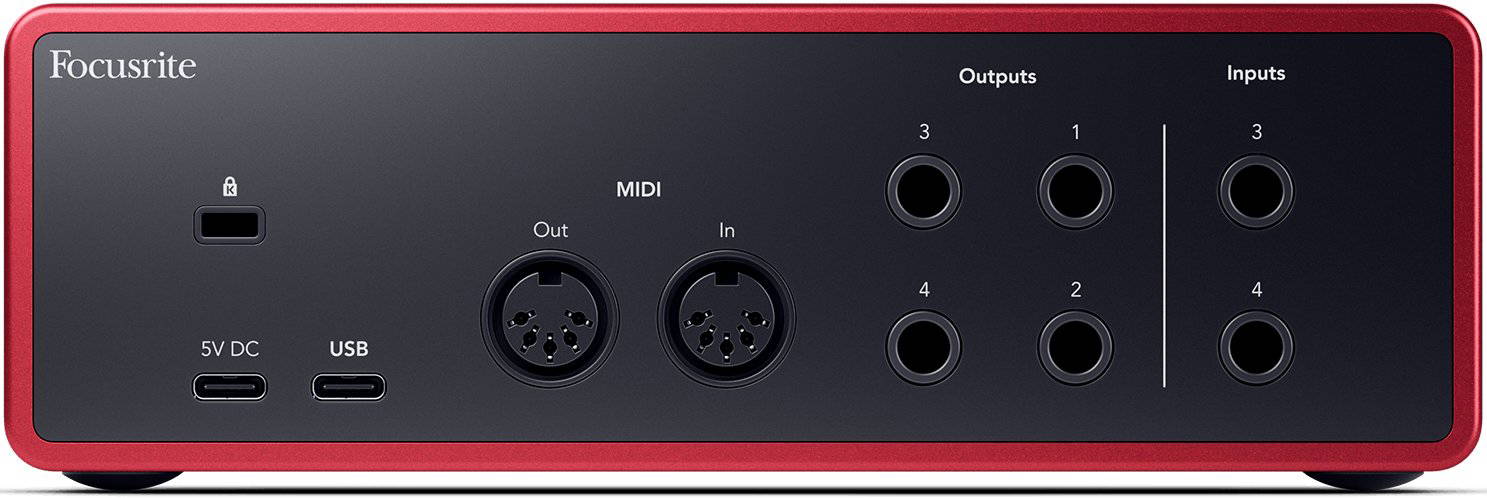 Hook up an electric guitar to one of 4i4’s Hi-Z instrument inputs — it feels just like an amp. Plug synths and grooveboxes straight into the super-high-quality line inputs. Connect your favourite outboard gear to the additional line outputs. You’ve even got MIDI.