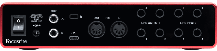 Sitting on the desks of more producers than any other, the Scarlett range of audio interfaces means studio quality sound for more music making machines than any other. Scarlett 8i6, with its dual mic-pres, fixed-line I/O and MIDI, gives you just the right connectivity to easily bring your hardware music making setup into the computer world.