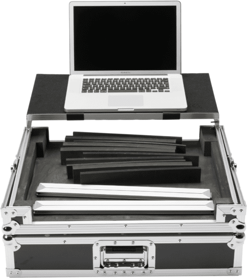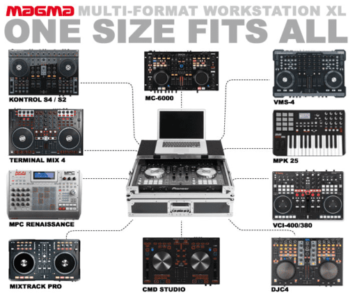 One size fits all! The MULTI-FORMAT Workstation XL is a heavy-duty road case for your DJ controller. It includes several foam pads in various sizes to accommodate most current extra-large DJ controllers such as NI S4 MK2, Pioneer DDJ-SB2, Denon MC-4000 etc. Crafted from 9 mm vinyl laminated plywood, sturdy aluminum profiles and heavy duty butterfly latches, it provides you with secure transport and workstation in one.