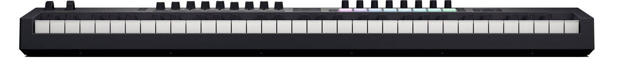 Launchkey 61 is a powerful DAW controller with five octaves of semi-weighted, waterfall-style keys, eight continuous encoders, nine faders and 16 velocity sensitive pads for playing drums and instruments and launching clips. Creative Chord and Scale modes are built right in and work with the OLED display to make staying in key effortless.