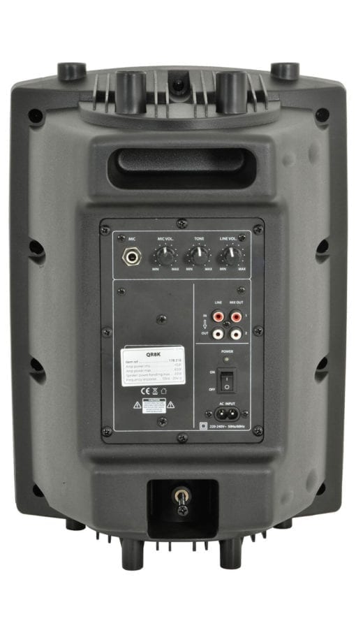 The QR15K is a compact injection moulded speaker cabinet with built-in amplifier and input section. Independent mic and line channels make this range ideal for DJs, vocalists and karaoke setups.