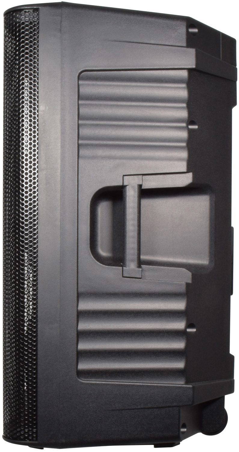 Active PA cabinets with inbuilt amplifier in a moulded polypropylene enclosure. Inputs for microphone and line level input have independent volume settings, with connection options of jack, XLR, RCA or minijack. An inbuilt audio player with independent volume control can accept USB or SD media with mp3 tracks or operate as an FM tuner or Bluetooth® receiver. Output is governed by Treble and Bass tone controls and can be output via an XLR line output. The internal amplifier also has an output for a passive speaker to make a convenient 2-speaker PA system. A comprehensive PA option for DJs, stage performers and presentations.