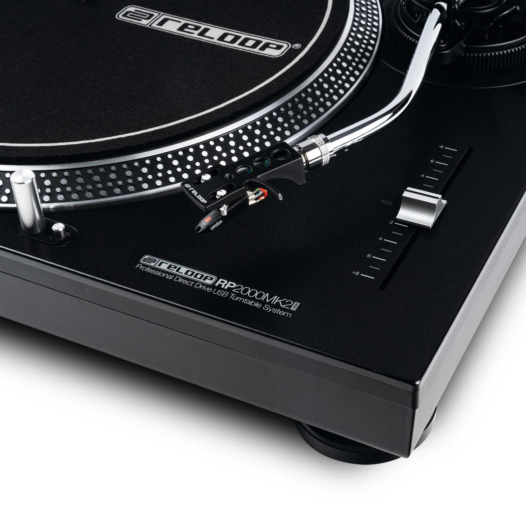 Compared to belt-driven turntables, the RP-2000 USB MK2 transfers its motor force directly to the drive hub – this way a higher torque generates power faster on the precision-engineered platter with minimal wow and flutter. The adjustable pitch control with a range of +/- 8 % is suitable for the finest pitch adjustments.